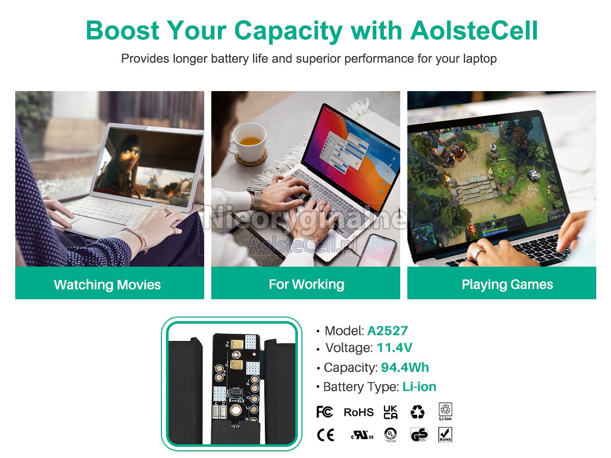 Przed zakupem baterii znajdź numer katalogowy starej baterii lub dokładną nazwę modelu Laptop (np. „A2780”) i porównaj ją ze specyfikacjami produktu i tabelą kompatybilności. Po drugie, porównaj kształt starej baterii ze zdjęciami naszych produktów, aby upewnić się, że są takie same.