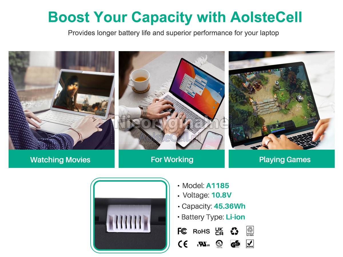 This battery replacement for Apple A1181(EMC 2092),A1181(EMC 2121),A1181(EMC 2139),A1181(EMC 2200),A1181(EMC 2242),A1181(EMC 2300).