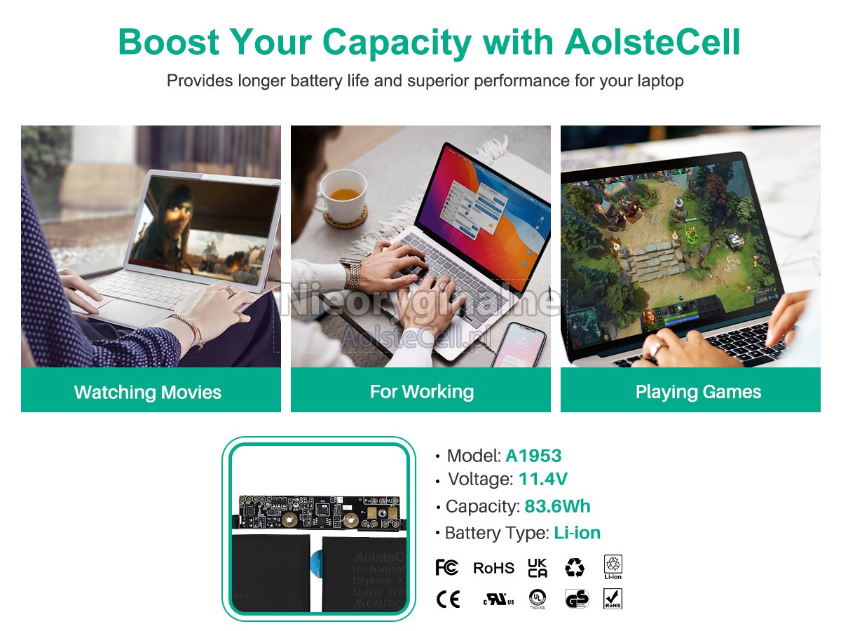 Przed zakupem baterii znajdź numer katalogowy starej baterii lub dokładną nazwę modelu Laptop (np. „MacBook Pro Core i9 2.9G 15 Inch Touch/2018”) i porównaj ją ze specyfikacjami produktu i tabelą kompatybilności. Po drugie, porównaj kształt starej baterii ze zdjęciami naszych produktów, aby upewnić się, że są takie same.