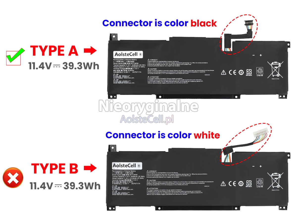 There are 2 types of batteries named "BTY-M491", please check the connector of your old battery before placing an order, make sure it is the same as ours.